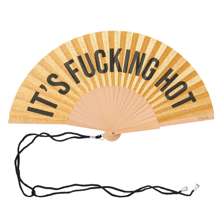 Abanico "It´s Fucking hot" Glitter Dorado
