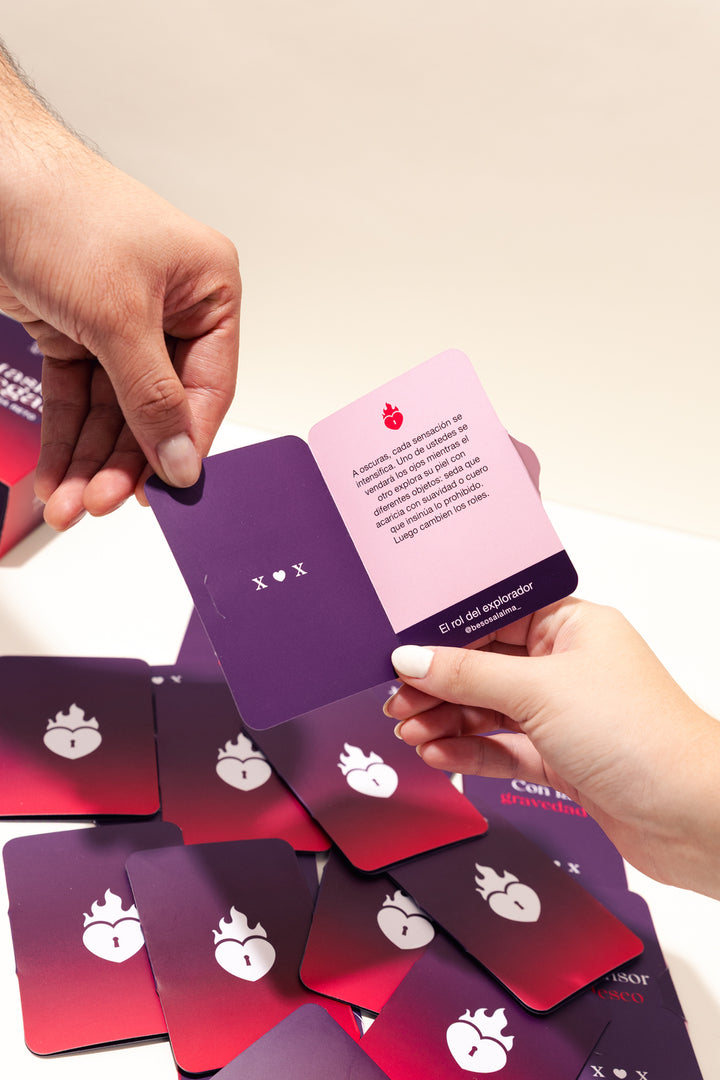 Fantasías a Ciegas es un juego erótico con 45 cartas llenas de fantasías y retos diseñados para salir de la rutina, encender el deseo y vivir experiencias íntimas completamente nuevas con tu pareja.