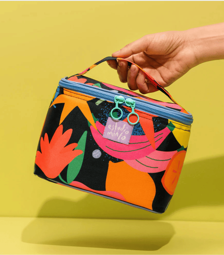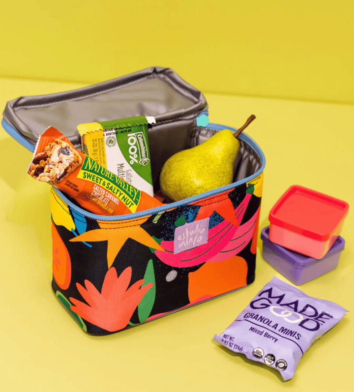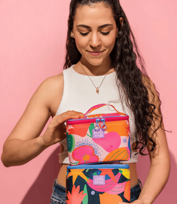 Mini lonchera práctica para llevar snacks a cualquier parte. Su recubrimiento térmico ayuda a mantener los alimentos frescos por más tiempo. Es compacta, fácil de guardar en el bolso o mochila, y se puede llevar a la mano con su agarradera.