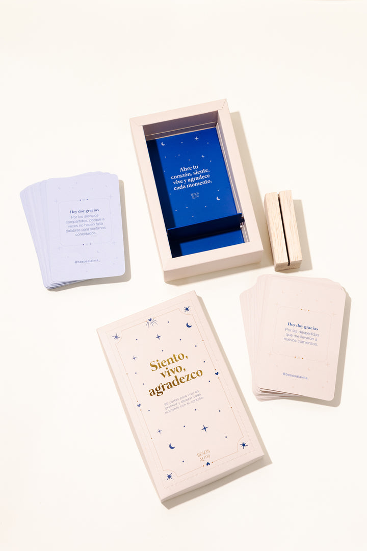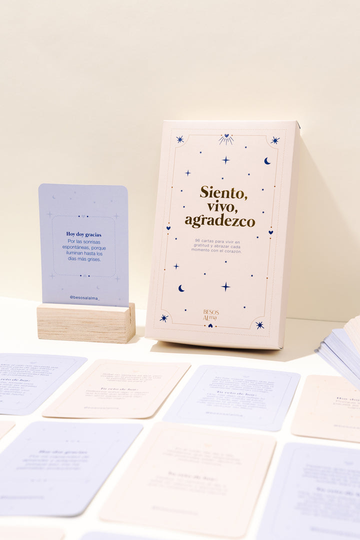 Incluye 96 cartas con frases y retos de gratitud para ayudarte a encontrar belleza en lo cotidiano, soltar lo que pesa y empezar a disfrutar más el presente.